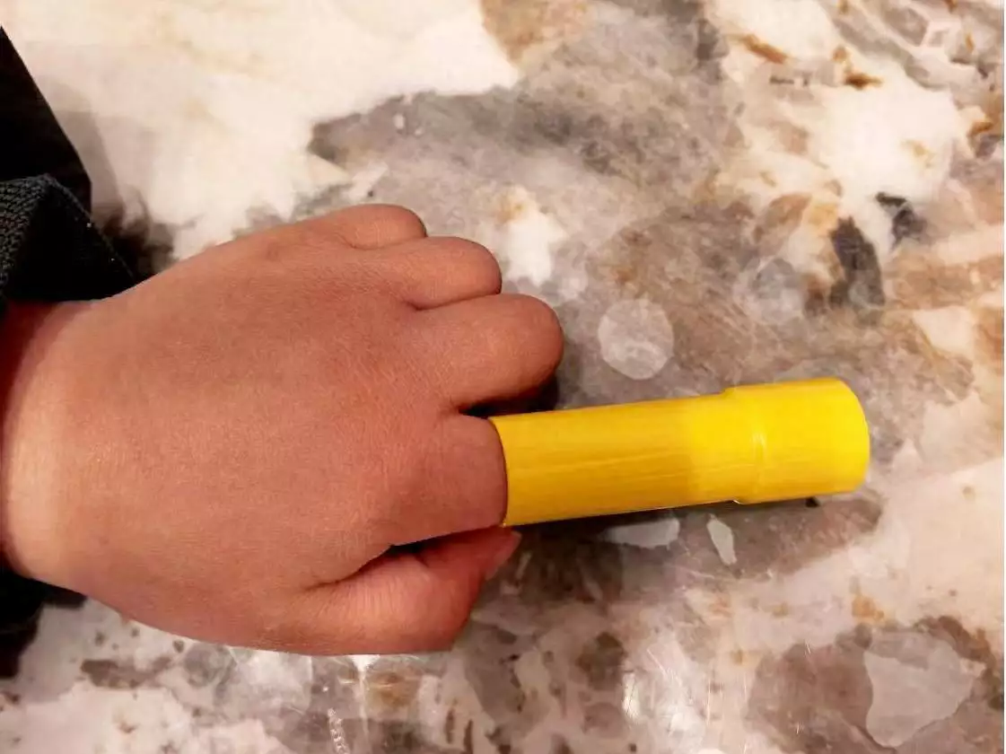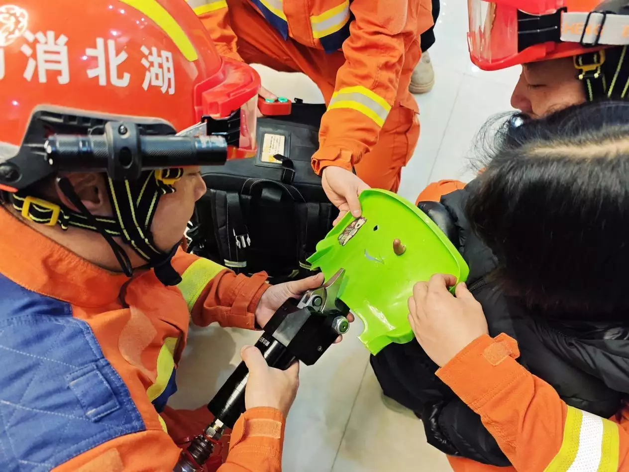 2025年2月8日,江夏区环湖路某小区,一名五岁男童在家中玩耍,不慎将手指塞入塑料玩具当中无法拔出,家长尝试解救无果后拨打了119报警求助。消防员赶到现场后,发现男童手指被死死卡在管状积木玩具中,有明显的红肿充血的情况。在仔细观察男孩手指情况后,消防员用平口钳和剪刀,小心翼翼地将玩具进行扩张和破拆。经过10分钟的救援作业,男童的手指成功拔出,目前已无大碍。