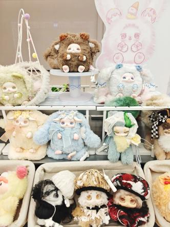 当搪胶毛绒款LABUBU成为新的“社交货币”,不知不觉间,搪胶毛绒工艺也成为当下其他潮玩IP的主流款式,“统治”潮玩店的货架。