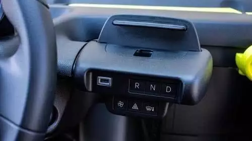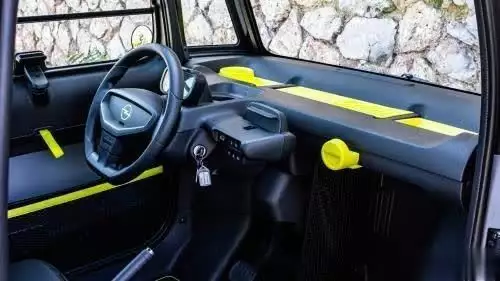 内饰的整体设计遵循外观的简约理念,具备驾驶员在城市交通中所需的绝对必需品。一个简单的方向盘,没有复杂的开关,一个仅显示基本信息(速度、自主性和变速箱比)的小屏幕和一个中央面板,顶部有由3个自然按钮(D、N、R)组成的档位选择器下面是加热玻璃、散热器、警报器和USB端口的开关。右手上所有按钮的这种“积累”提高了人体工程学设计,并提供直接访问,而驾驶员无需寻找按钮。