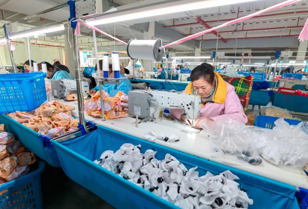 该企业专注于毛绒玩具和宠物玩具的设计、生产、销售及出口贸易,年产毛绒玩具500万只。自复工以来,企业产能已恢复80%,目前日产毛绒玩具5万多只。
