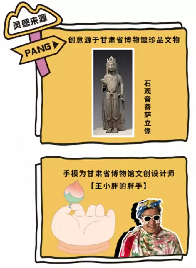 据悉,“拿捏·胖手毛绒玩具”是甘肃省博物馆去年12月推出的文创产品,设计创意来源于馆内珍品文物石观音菩萨立像,其右手曲肘上举持莲蕾。献花手寓意有福之手,也代表着智慧与力量,手模为甘肃省文创设计师王小胖的胖手。