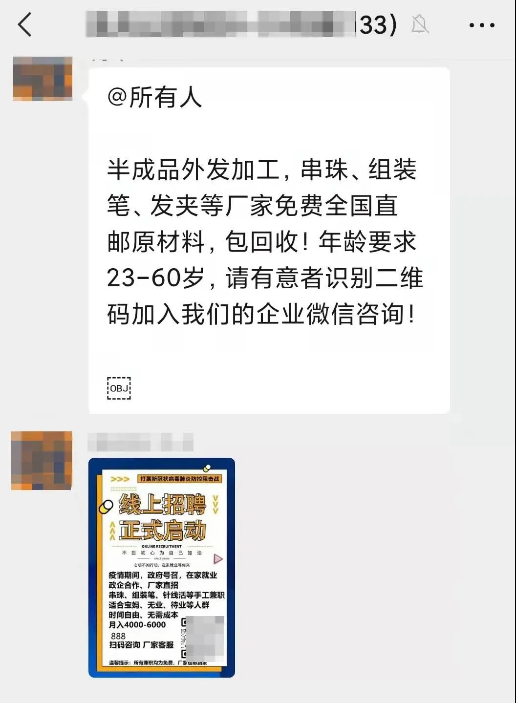 扫码群发兼职信息