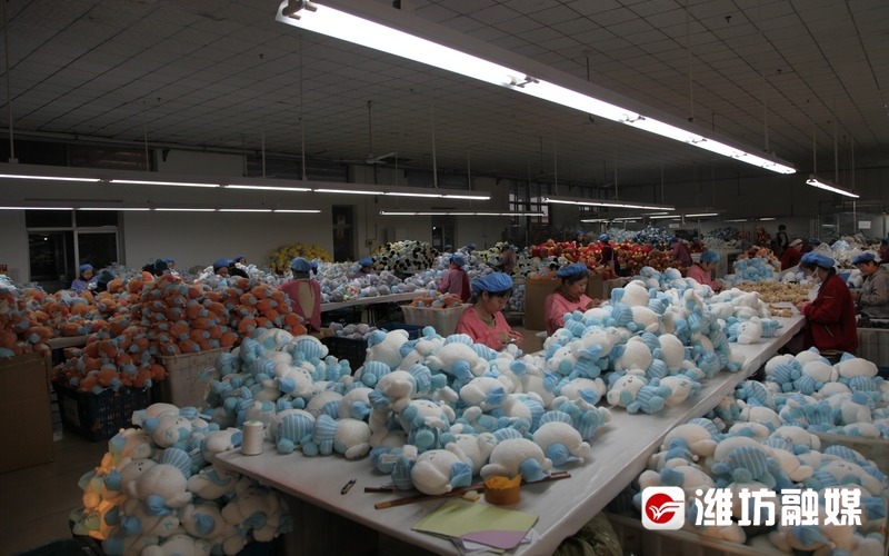 11月26日,记者在潍坊庆德工艺品有限公司生产车间看到,60多名女工正在聚精会神地生产各种毛绒玩具,打样、裁缝、粘贴、检验、包装。大家分工负责,各道生产工序紧密衔接。一个个做好的玩具摆放在台案上,栩栩如生,煞是好看。
