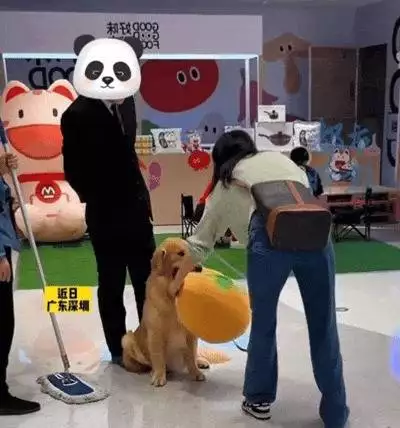 简直不要太搞笑,铲屎官带着自家金毛去逛商场。