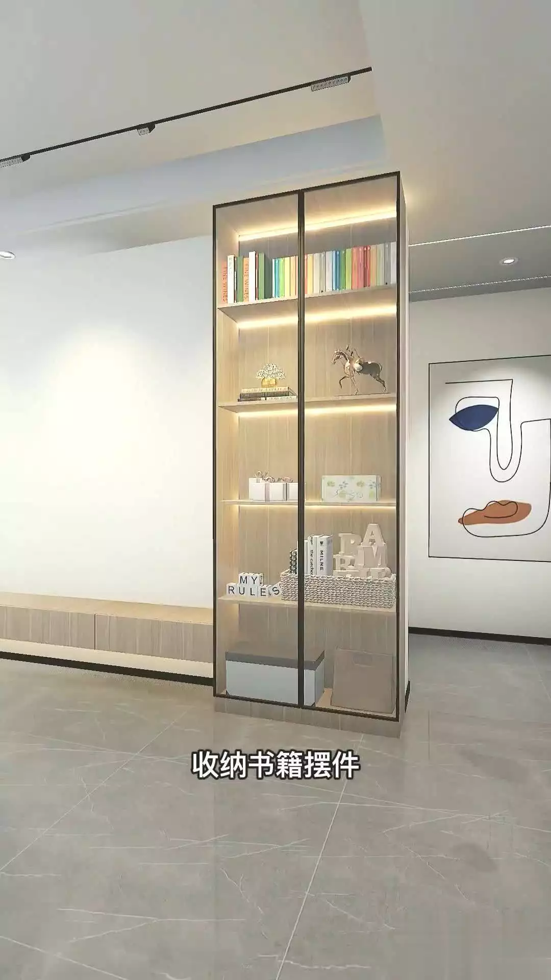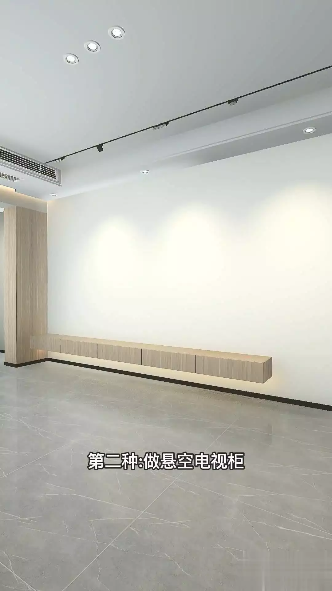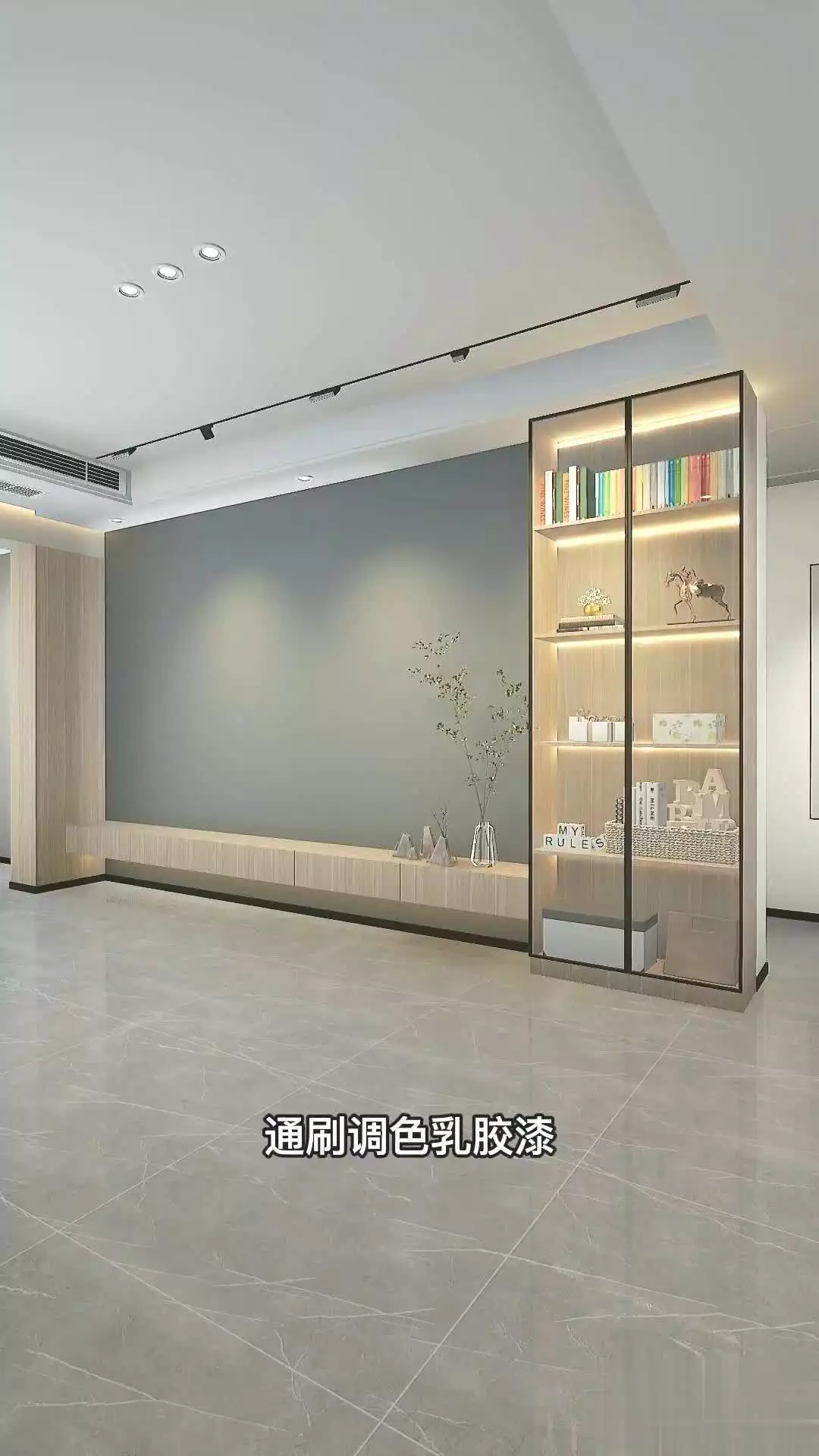 做悬空电视柜,旁边做书柜,用于收纳书籍、摆件等。墙面通刷调色乳胶漆,装超大激光电视,简洁又大方的电视墙不就呈现出来了。